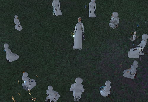 円形に並んでみる白い人たち